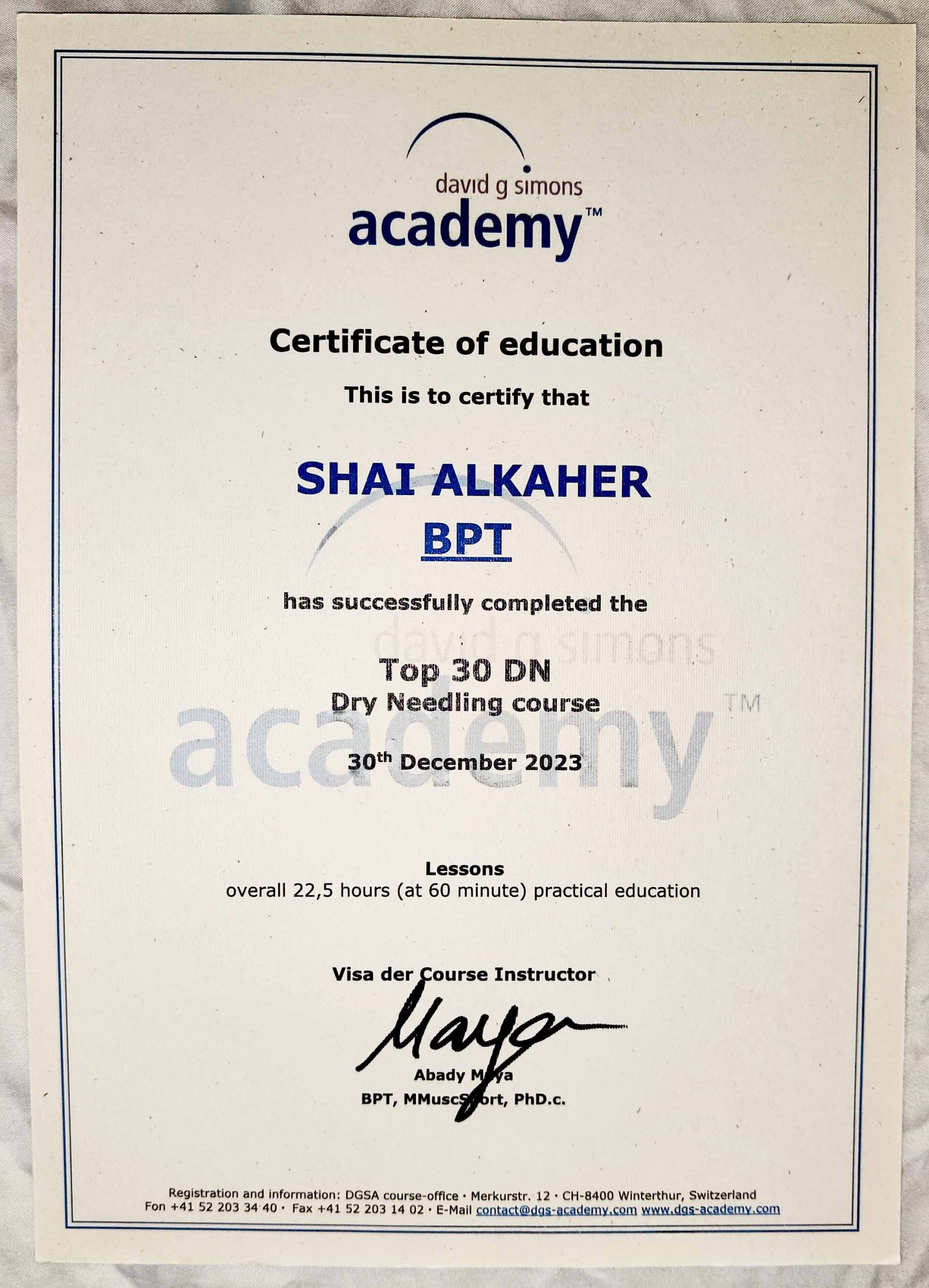 שי אלקחר- פיזיותרפיה